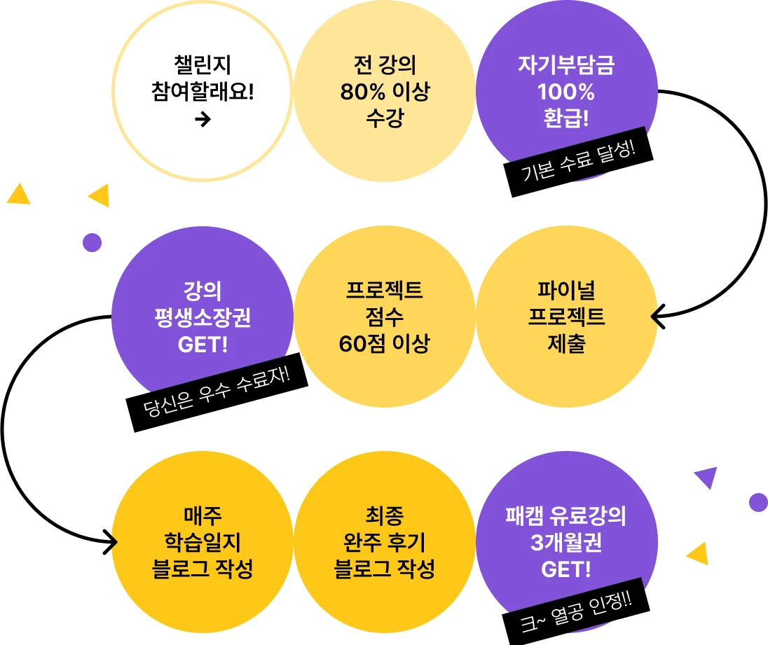 * 진도율 80%이상 & 프로젝트 60점 이상 달성 시